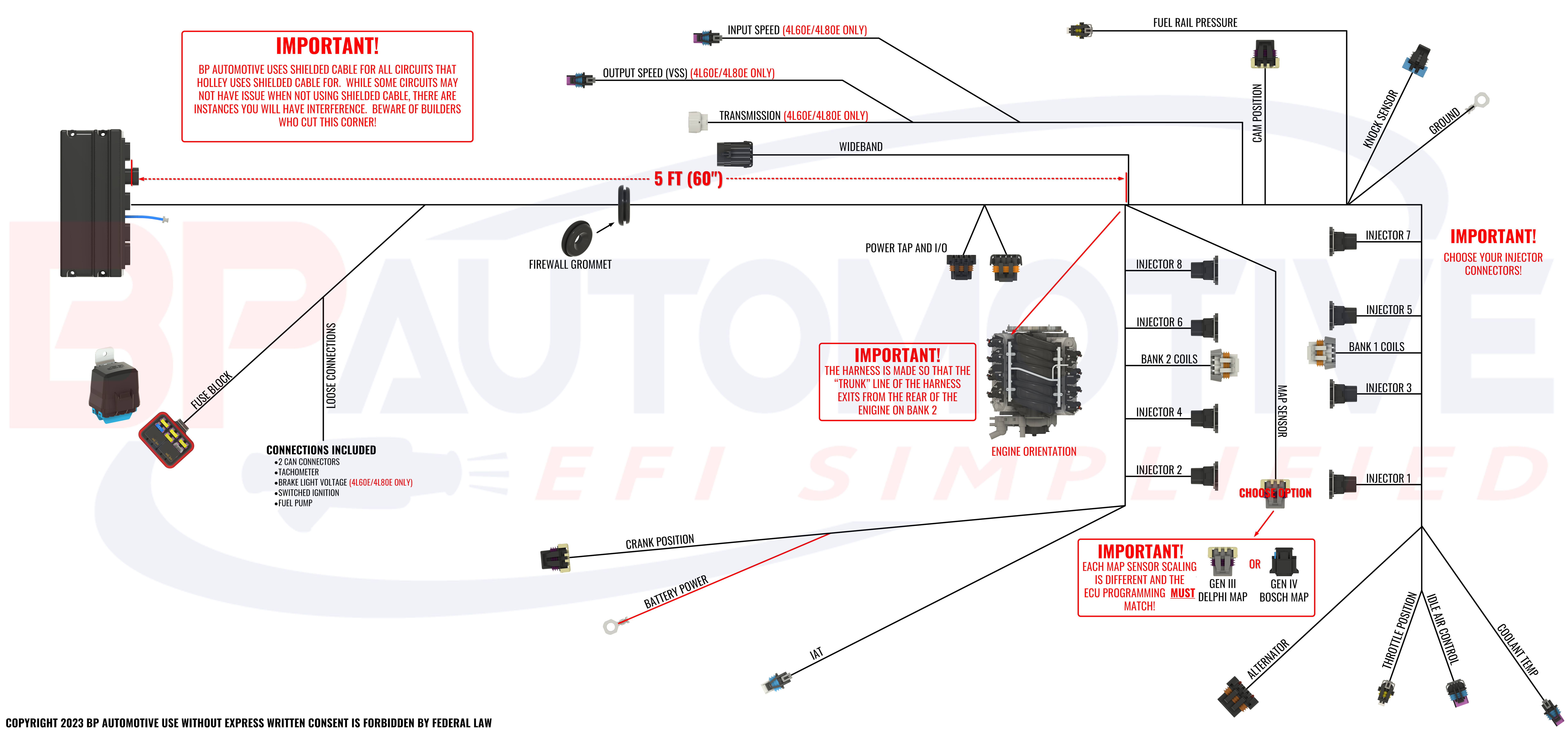 BP Automotive uses a combination of GM and Holley color-coding to aid in tech support and easy installation
